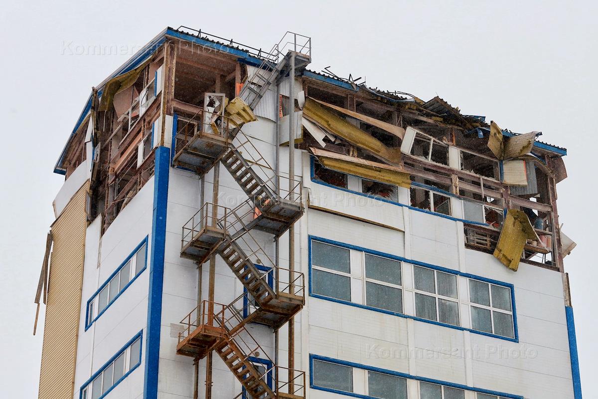 An explosion in a building on the territory of the industrial zone at 9/4 Severny proezd. Demolished two upper floors.