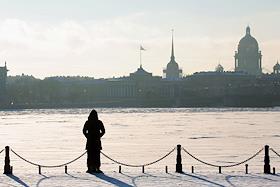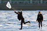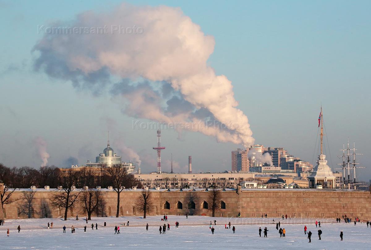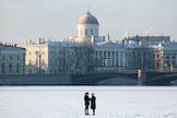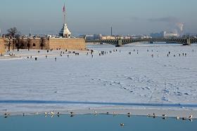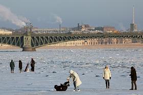 Виды Санкт-Петербурга. Жанровая фотография. Горожане гуляют по льду реки Невы.
