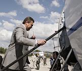 Лидер Партии регионов Украины, бывший премьер-министр Украины Виктор Янукович на открытии пятого украинского авиасалона "Авіасвіт" в Киеве.