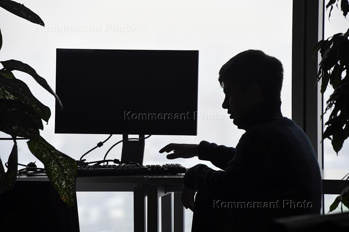 Жанровая фотография. Силуэт мужчины, работающего за компьютером.