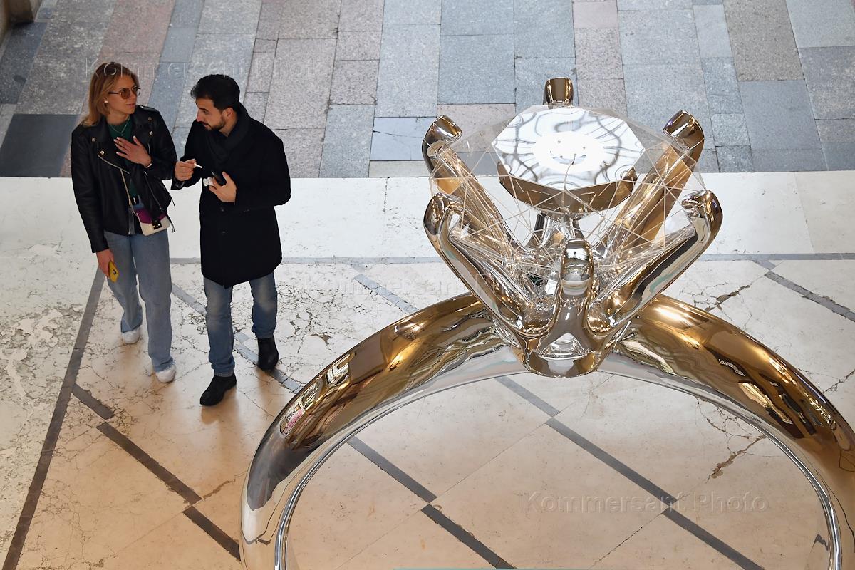 Жанровая фотография. QR код на руке скульптуры в ГУМе.