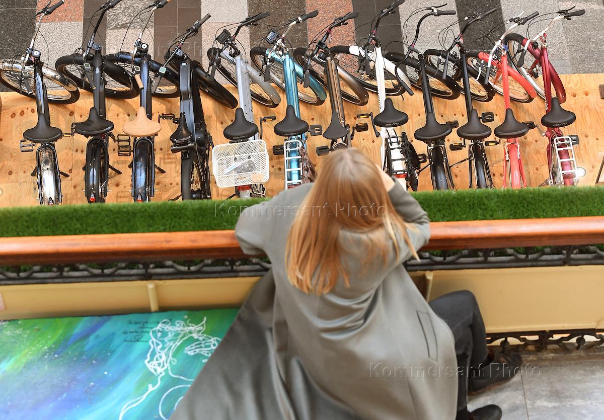 Жанровая фотография. Девушка на фоне велосипедной парковки.