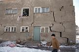 Последствия землетрясения в селе Тиличики. Житель дома выносит домашнюю мебель, уцелевшую во время землетрясения.