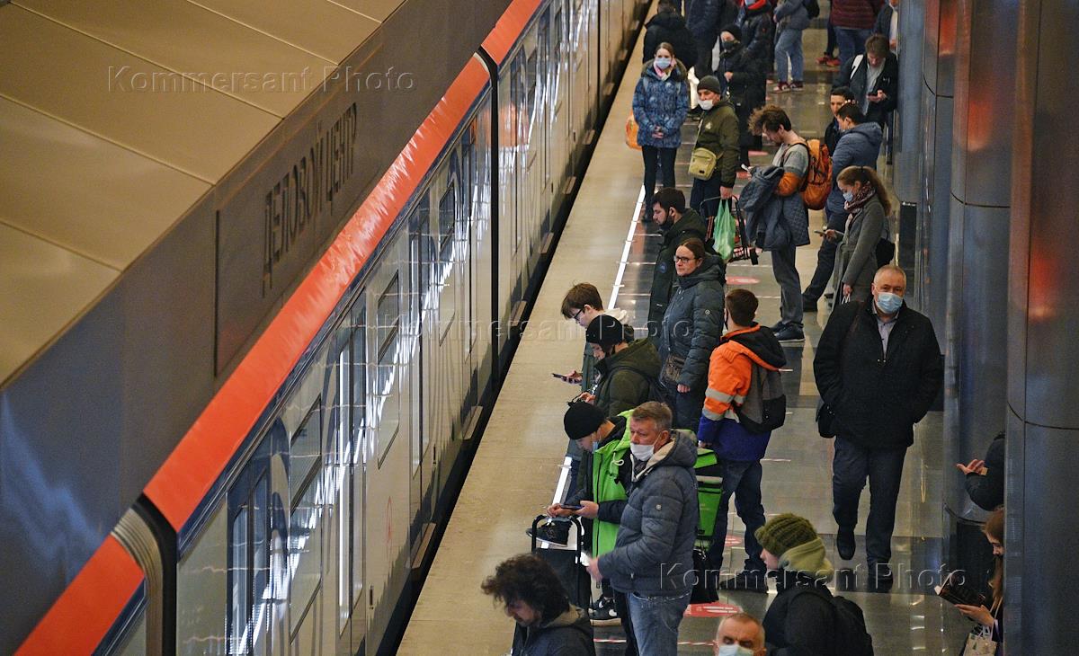 Виды Москвы. Жанровая фотография. Пассажиры на станции Московского метрополитена "Деловой центр".