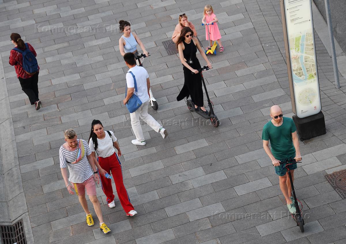 Виды Москвы. Жанровая фотография. Парковка самокатов возле ресторана Il Patio.