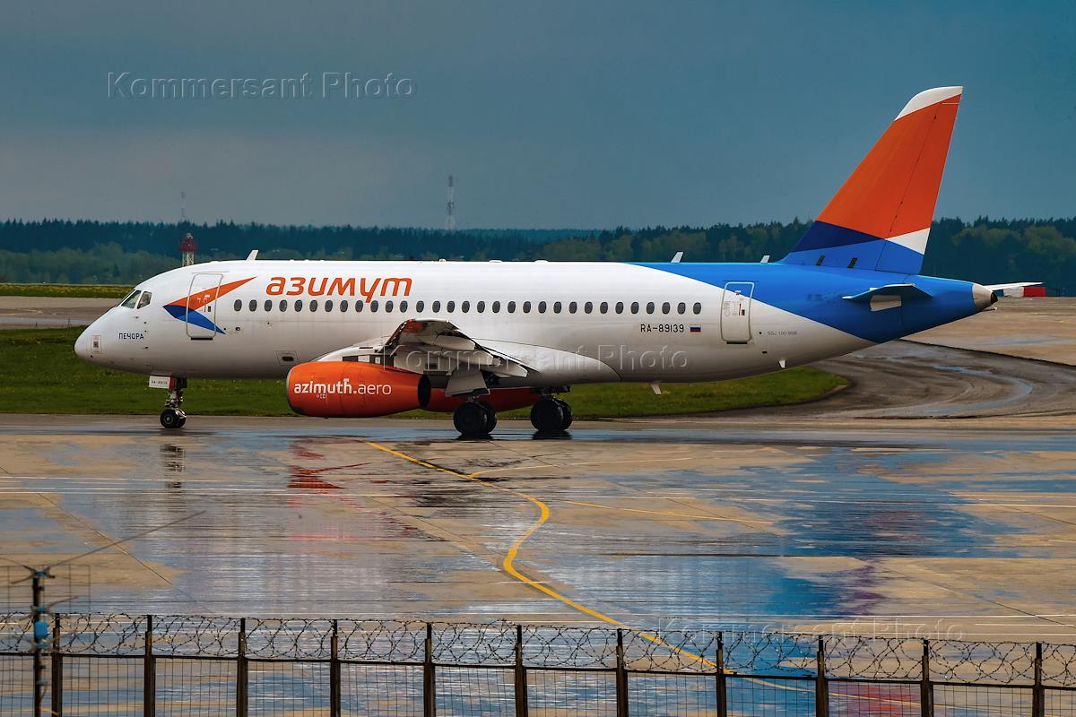 Жанровая фотография. Самолет авиакомпании "Азимут" на летном полем международного аэропорта Внуково имени Туполева.