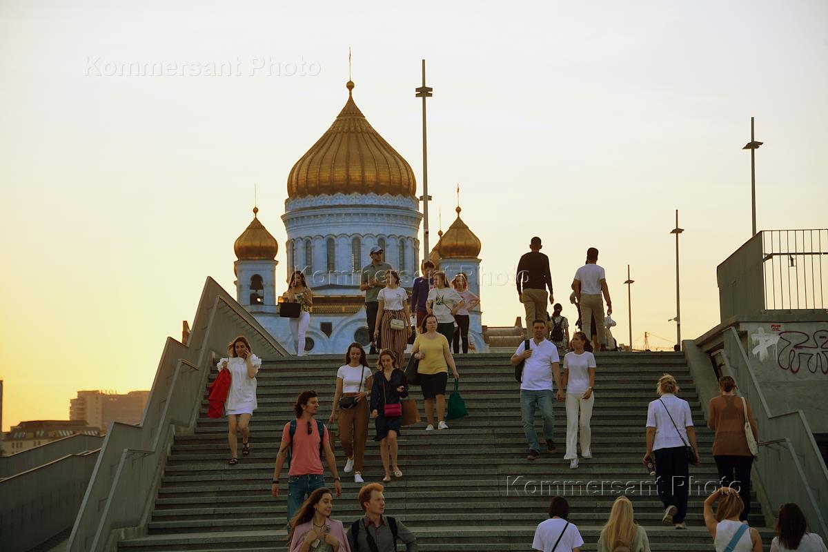 Виды Москвы. Жанровая фотография. Горожане во время прогулки по набережной.