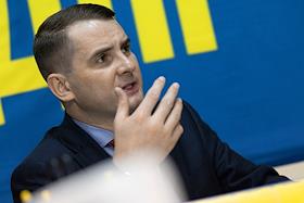 Председатель комитета Государственной думы России по труду, социальной политике и делам ветеранов Ярослав Нилов во время интервью.