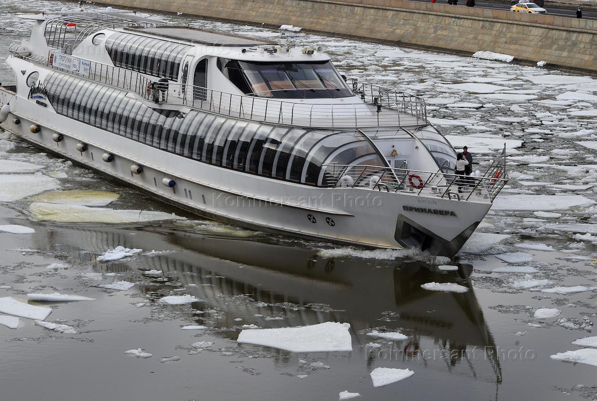 Genre photography. Pleasure motor ship "Primavera" on the Moskva River.