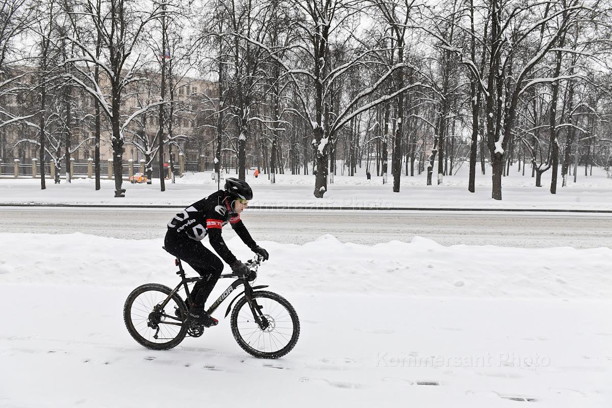 Виды Москвы после снегопада. Жанровая фотография. Мужчина во время пробежки в парке.