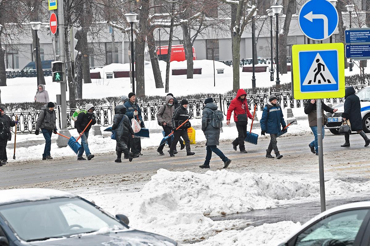 Жанровая фотография. Снегопад в городе. Вывоз снега с территории Воробьевых гор.