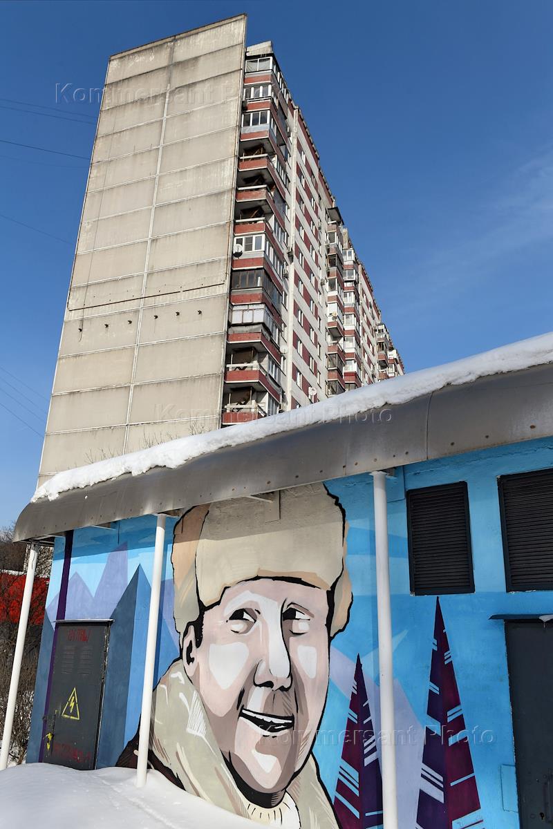 Виды Москвы. Жанровая фотография. Девушка смотрит на разрисованную стену здания.