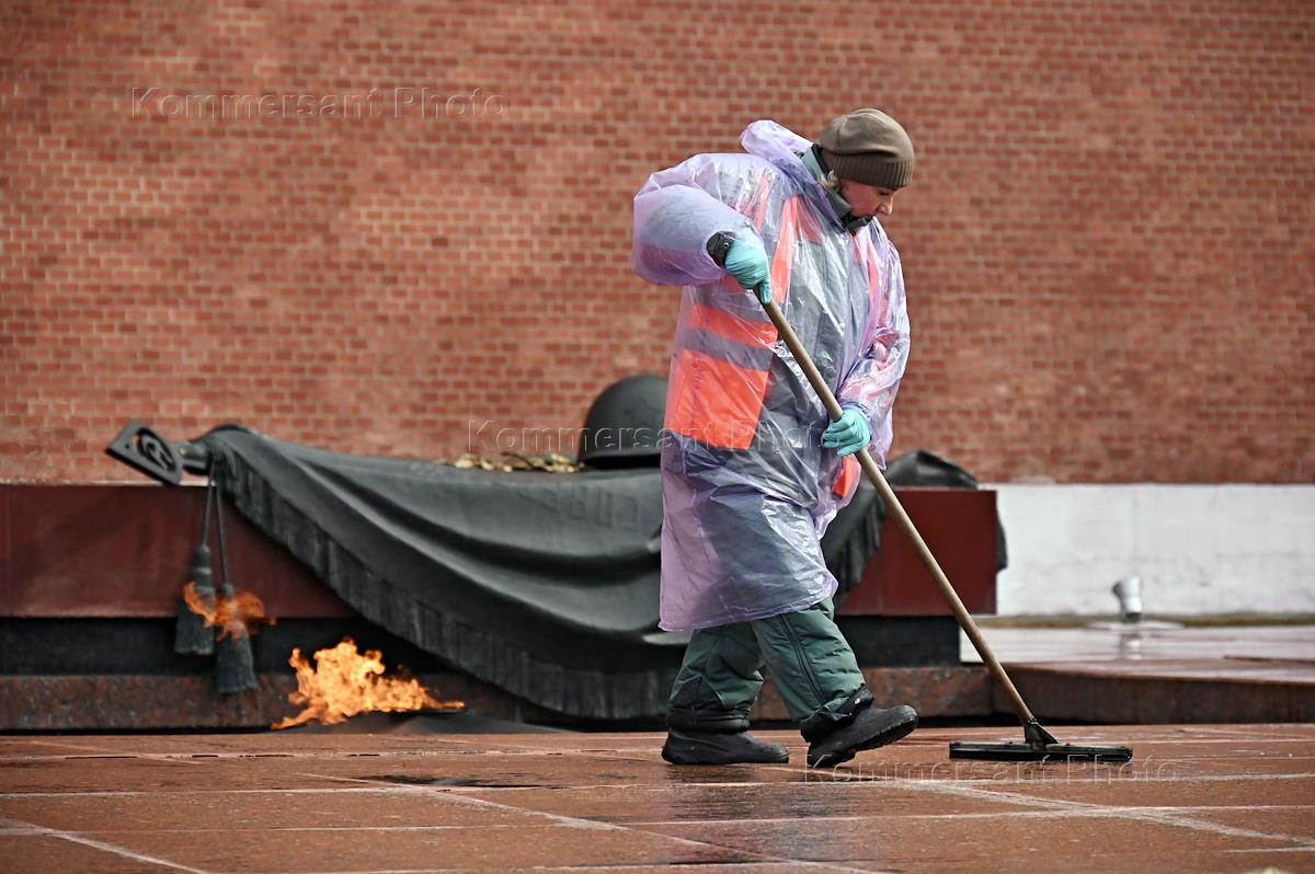Views of Moscow. Genre photography. The eternal flame at the Tomb of the Unknown Soldier near the walls of the Moscow Kremlin.