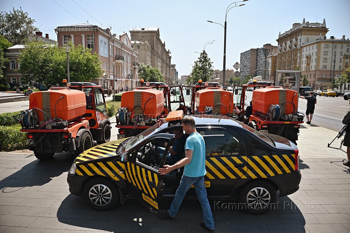 Views of Moscow. Genre photography. Aeration of the carriageway in the area of Novinsky Boulevard.