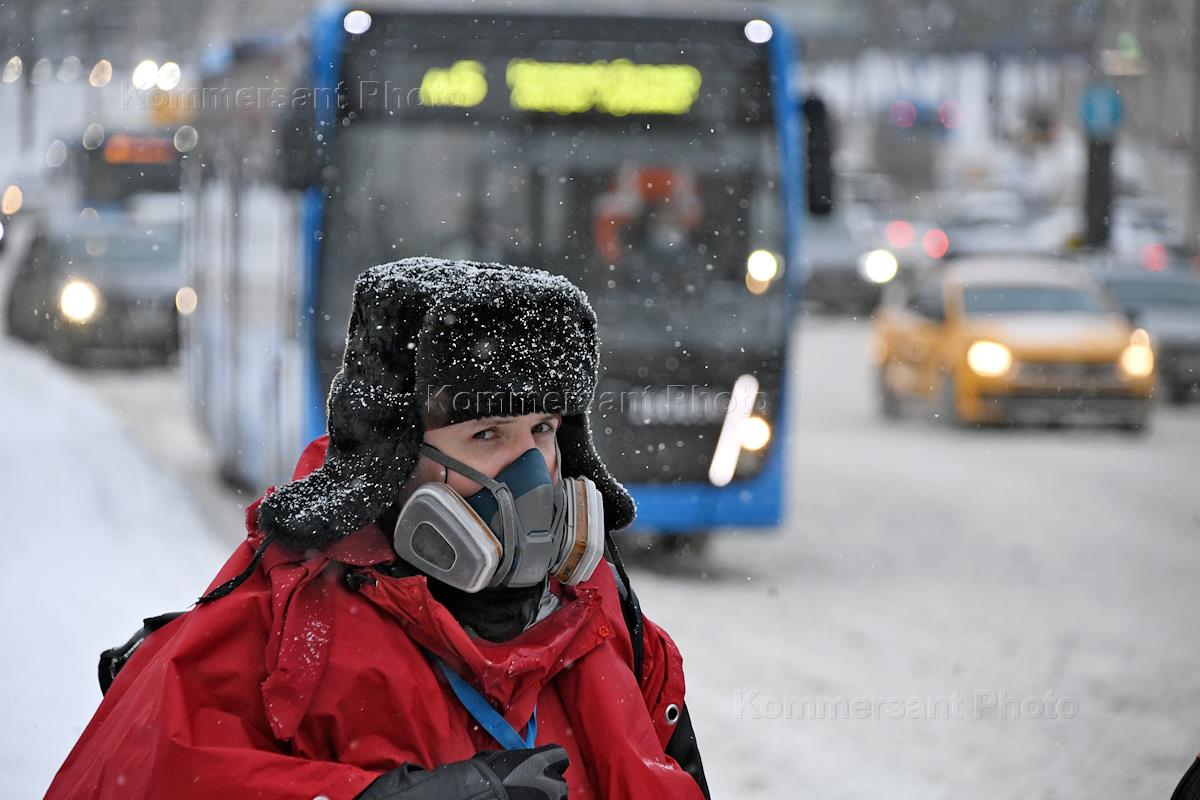 Жанровая фотография. Водитель трамвая во время очистки рельс от снега.