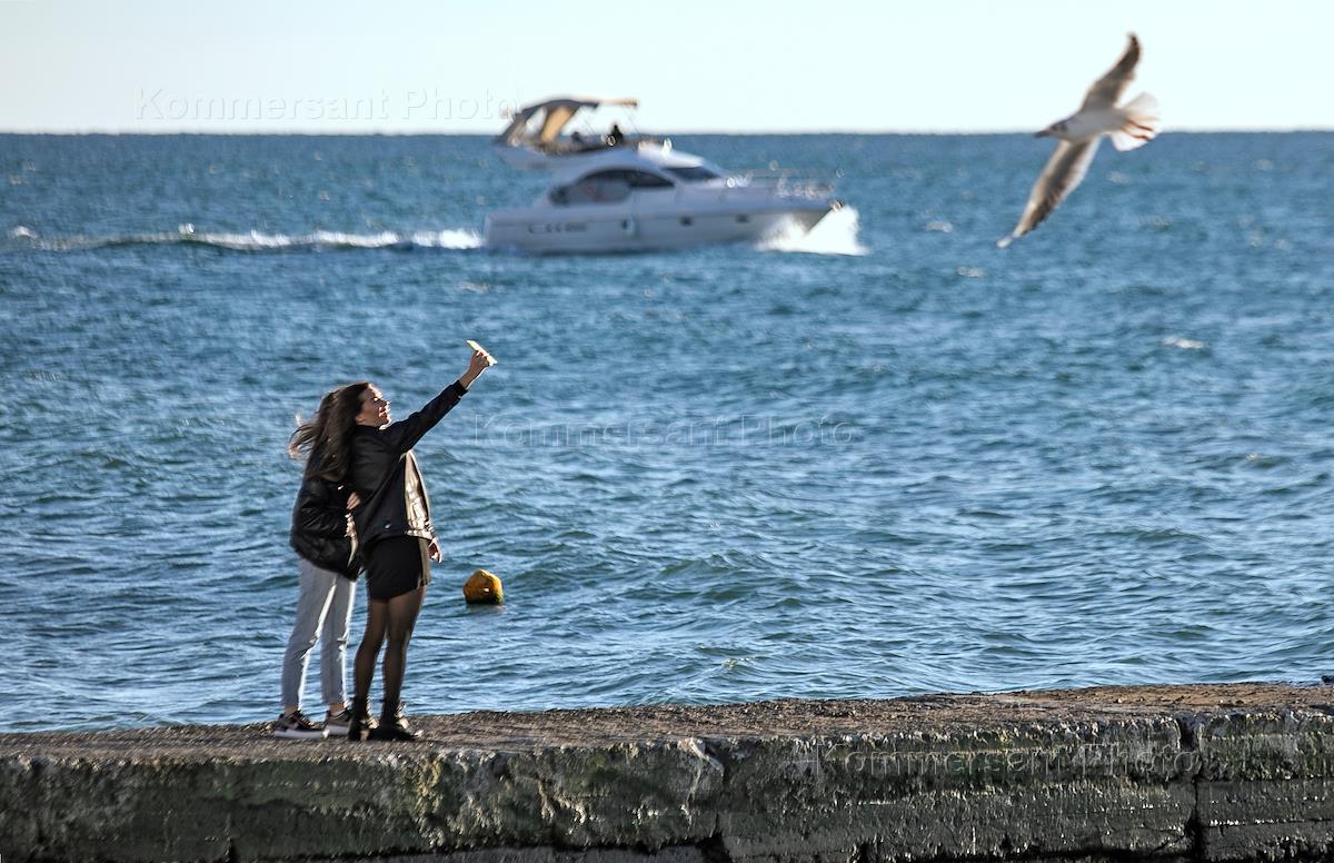Sochi views. Genre photography. Vacationers on the Black Sea coast.
