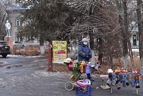 Досрочные выборы президента Киргизии. Жанровая фотография. Жещина продает вязаные изделия на улице.