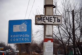 Досрочные выборы президента Киргизии. Виды Киргизии. Указатель "Мечеть" на столбе в окрестностях Бишкека.