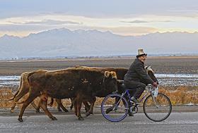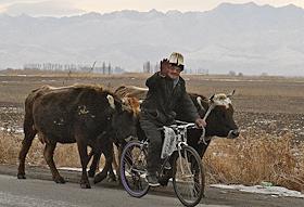 Досрочные выборы президента Киргизии. Жанровая фотография. Пастух на велосипеде на границе с Казахстаном.