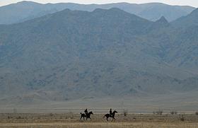 Досрочные выборы президента Киргизии. Виды Киргизии. Всадники на конях на границе с Казахстаном.