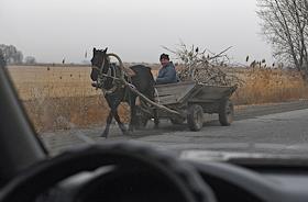 Досрочные выборы президента Киргизии. Жанровая фотография. Мужчина в телеге на лошади в окрестностях Бишкека.