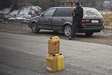 Досрочные выборы президента Киргизии. Жанровая фотография. Мужчина возле автомобиля с канистрами бензина.