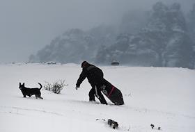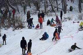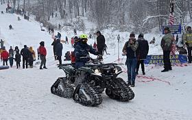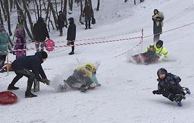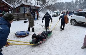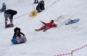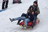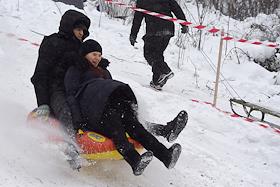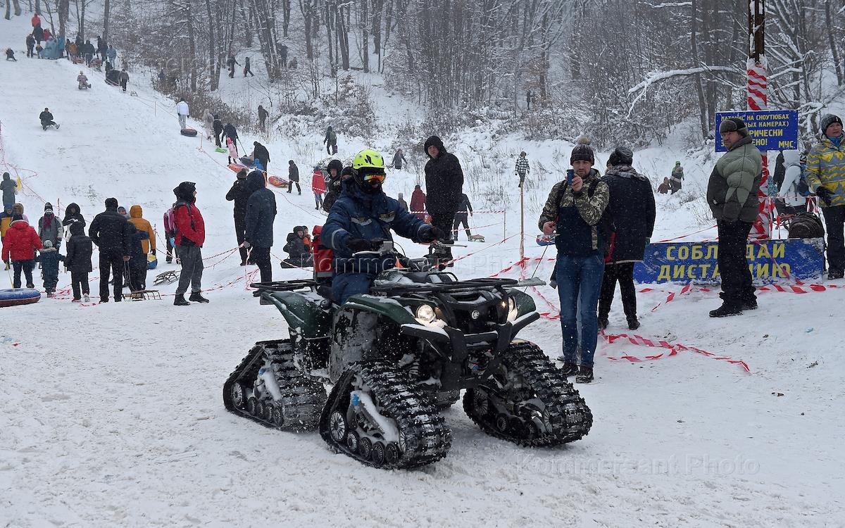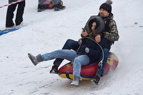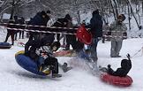 Виды Крыма после снегопада. Жанровая фотография. Катание с горы на тюбинге на Ангарском перевале.