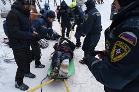 Жанровая фотография. Сотрудники МЧС во время эвакуации с перевала пострадавшего со сломанной ногой.