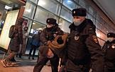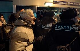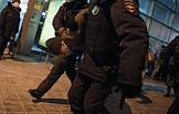 Сотрудники полиции во время задержания сторонника политика Алексея Навального в аэропорту Внуково.