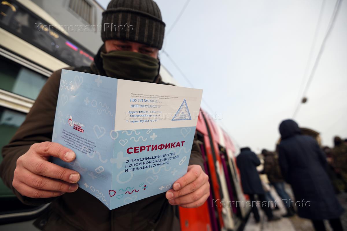 Жанровая фотография. Сертификат о вакцинации против новой коронавирусной инфекции (COVID-19), так называемый "ковидный паспорт"