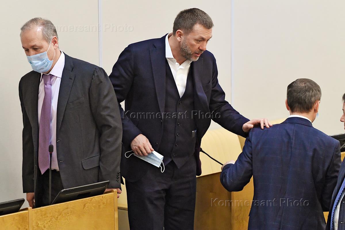 Пленарное заседание Государственной думы (ГД) России. Слева направо: заместитель председателя комитета ГД по федеративному устройству и местного самоуправления Игорь Сапко, первый заместитель председателя комитета ГД России по бюджету и налогам Ирина Гусева и член комитета ГД России по государственному строительству и законодательству Ирина Белых перед началом заседания.