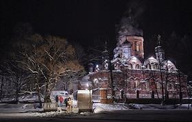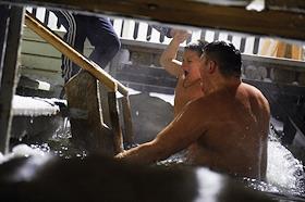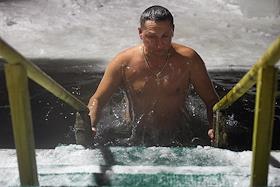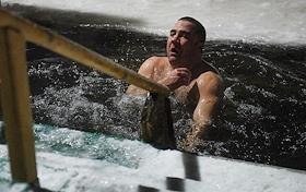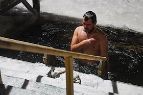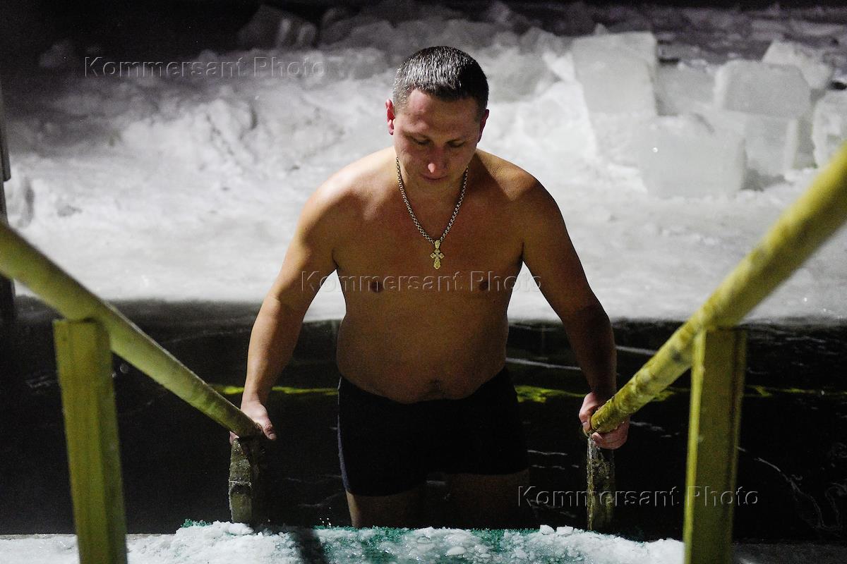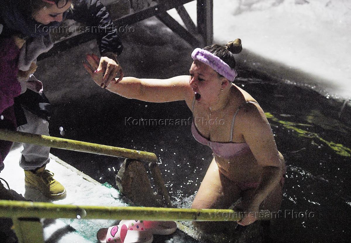 Праздник Крещения Господня. Крещенские купания в проруби на территории Свято-Введенского островного монастыря.