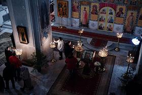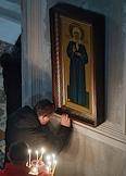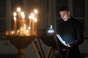 Праздник Крещения Господня. Священнослужитель во время торжественного богослужения в храме Свято-Введенского островного монастыря.