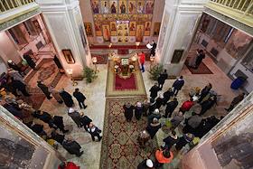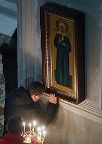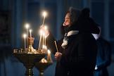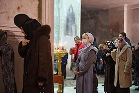 Праздник Крещения Господня. Верующие во время торжественного богослужения в храме Свято-Введенского островного монастыря.