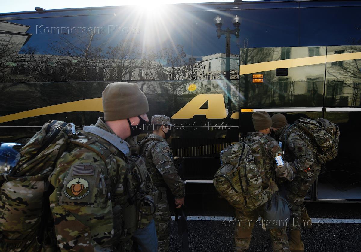 Подготовка к инаугурации избранного президента США Джозефа Байдена. Военнослужащие на территории Капитолия - здания Конгресса США.