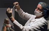Центр вакцинации от коронавирусной инфекции COVID-19 на территории Главного универсального магазина (ГУМ). Жанровая фотография. Медицинский сотрудник набирает в шприц вакцину "Гам-КОВИД-Вак" ("Спутник V").