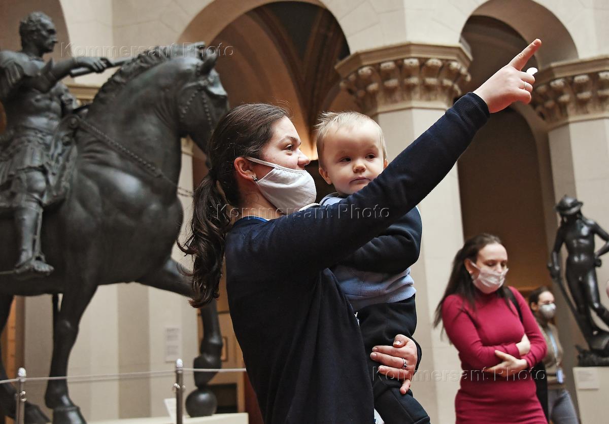 Открытие Государственного музея изобразительных искусств (ГМИИ) имени А.С.Пушкина для посетителей после снятия ограничений, связанных с угрозой распространения коронавирусной инфекции Covid-19. Жанровая фотография.