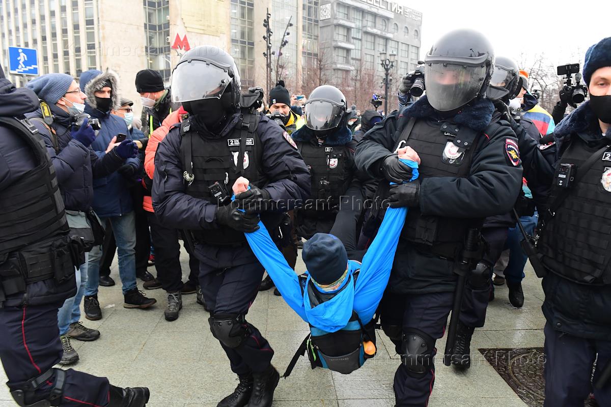 A rally in support of the politician Alexei Navalny at Pushkinskaya Square. Clashes between police officers and protesters.