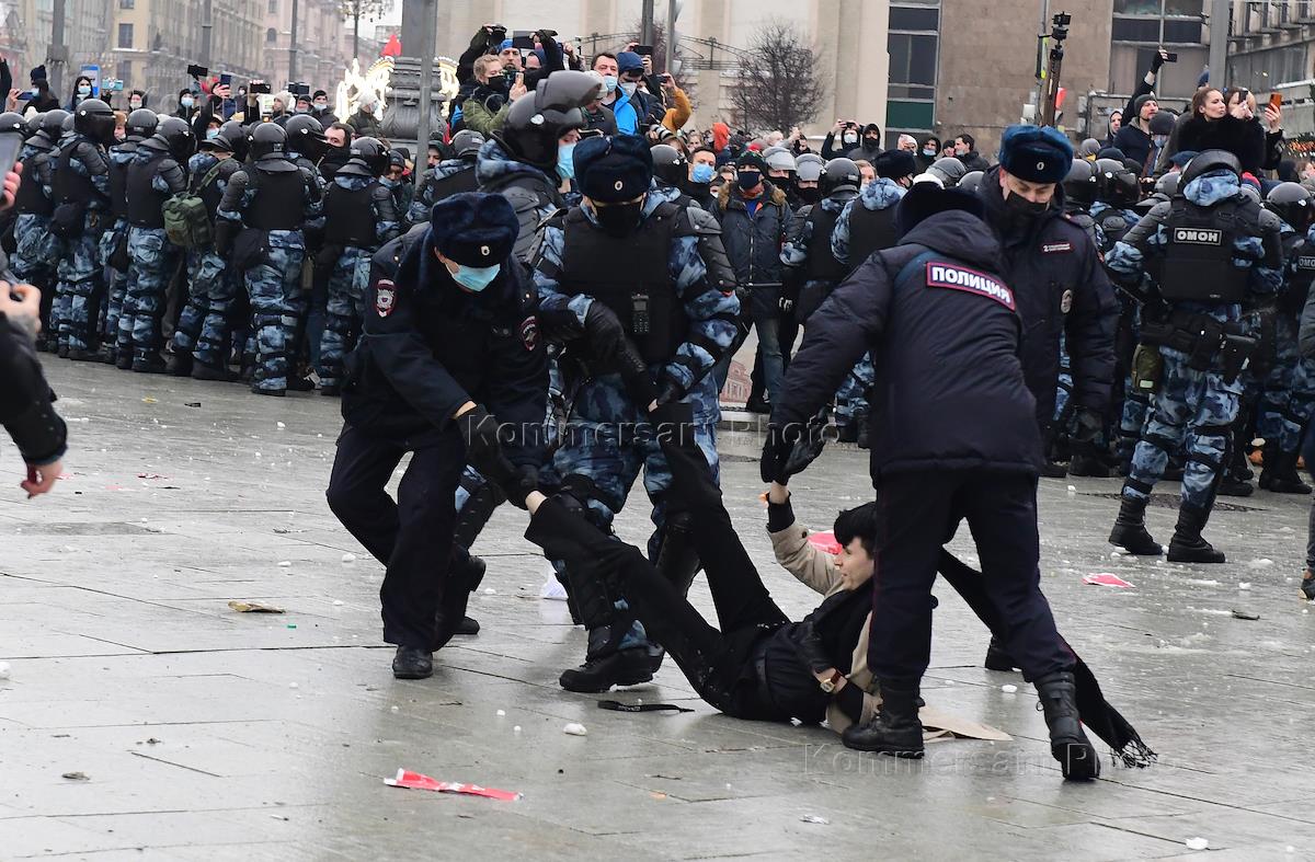 A rally in support of the politician Alexei Navalny at Pushkinskaya Square. Clashes between police officers and protesters.
