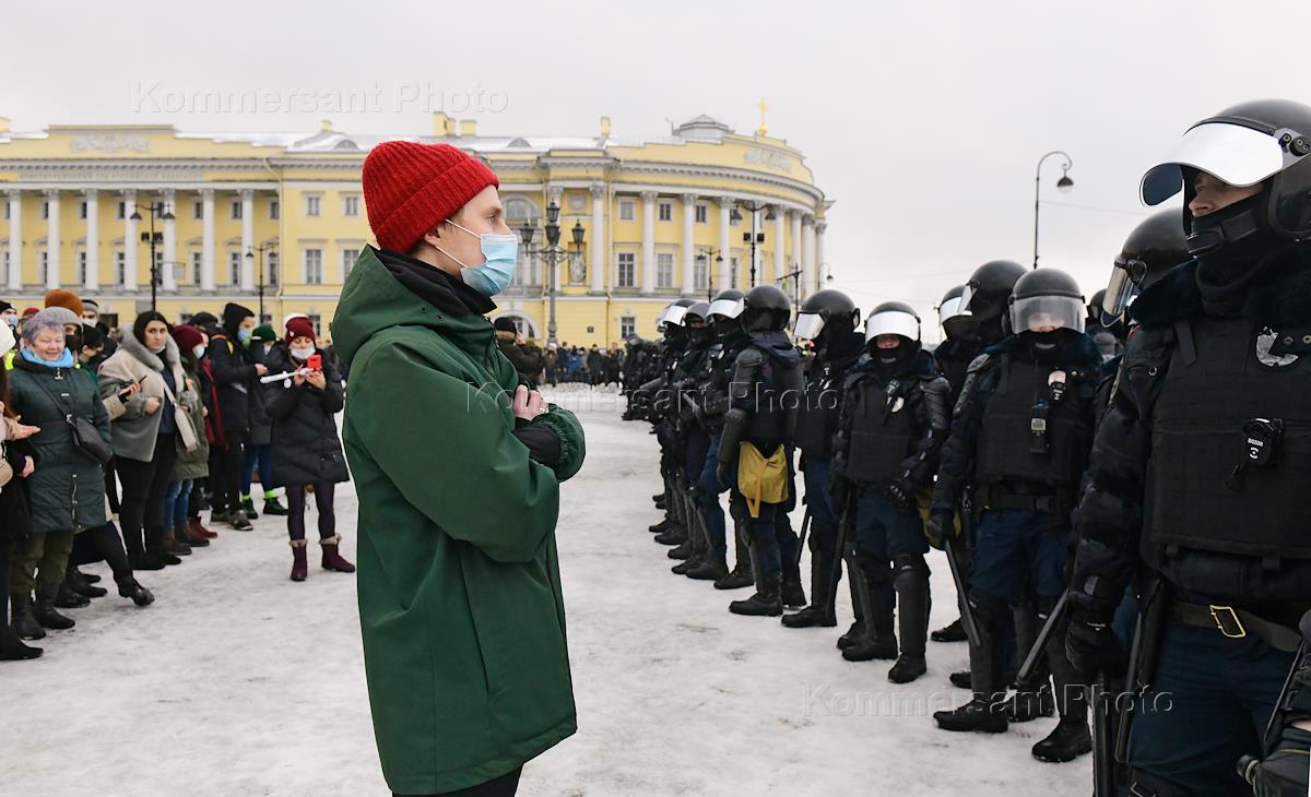 Несогласованная акция в поддержку задержанного оппозиционера Алексея Навального на Сенатской площади. Корреспондент ИД "Коммерсантъ" в Санкт-Петербурге" Олег Дилимбетов, незаконно задержанный во время работы.