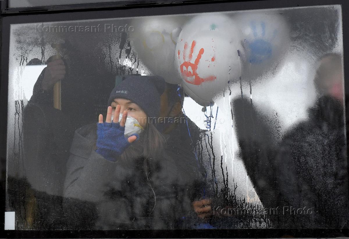 Митинг в поддержку политика Алексея Навального на Сенатской площади. Задержанные участники митинга в автобусе полиции.