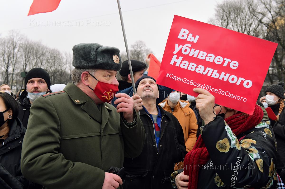 Несогласованная акция в поддержку задержанного оппозиционера Алексея Навального на Сенатской площади. Корреспондент ИД "Коммерсантъ" в Санкт-Петербурге" Олег Дилимбетов, незаконно задержанный во время работы.