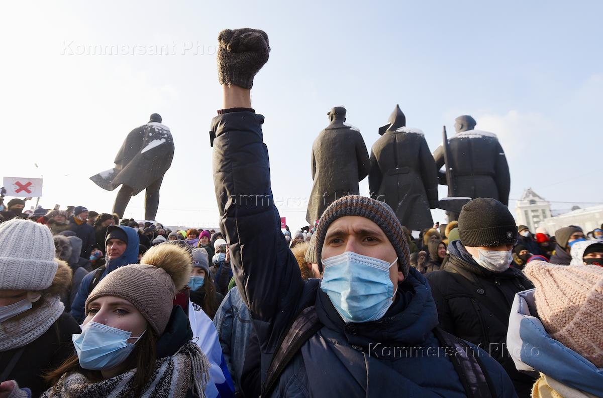 Митинг в поддержку политика Алексея Навального на Красном проспекте и Площади Ленина. Участники во время митинга.