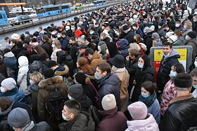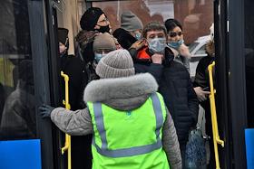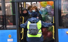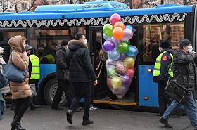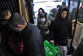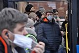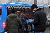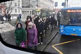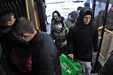 Закрытие участка "Беляево" - "Новые Черемушки" Калужско-Рижской линии Московского метрополитена. Жанровая фотография. Пассажиры в компенсационном автобусе.