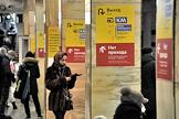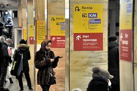 Закрытие участка "Беляево" - "Новые Черемушки" Калужско-Рижской линии Московского метрополитена. Жанровая фотография. Пассажиры в пешеходном переходе метро.