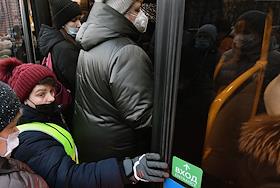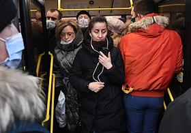 Закрытие участка "Беляево" - "Новые Черемушки" Калужско-Рижской линии Московского метрополитена. Жанровая фотография. Пассажиры в салоне компенсационного автобуса.
