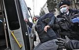 Митинг в поддержку политика Алексея Навального. Участники во время митинга. Сотрудники полиции во время задержания участника митинга и транспортировки его в Автозак.