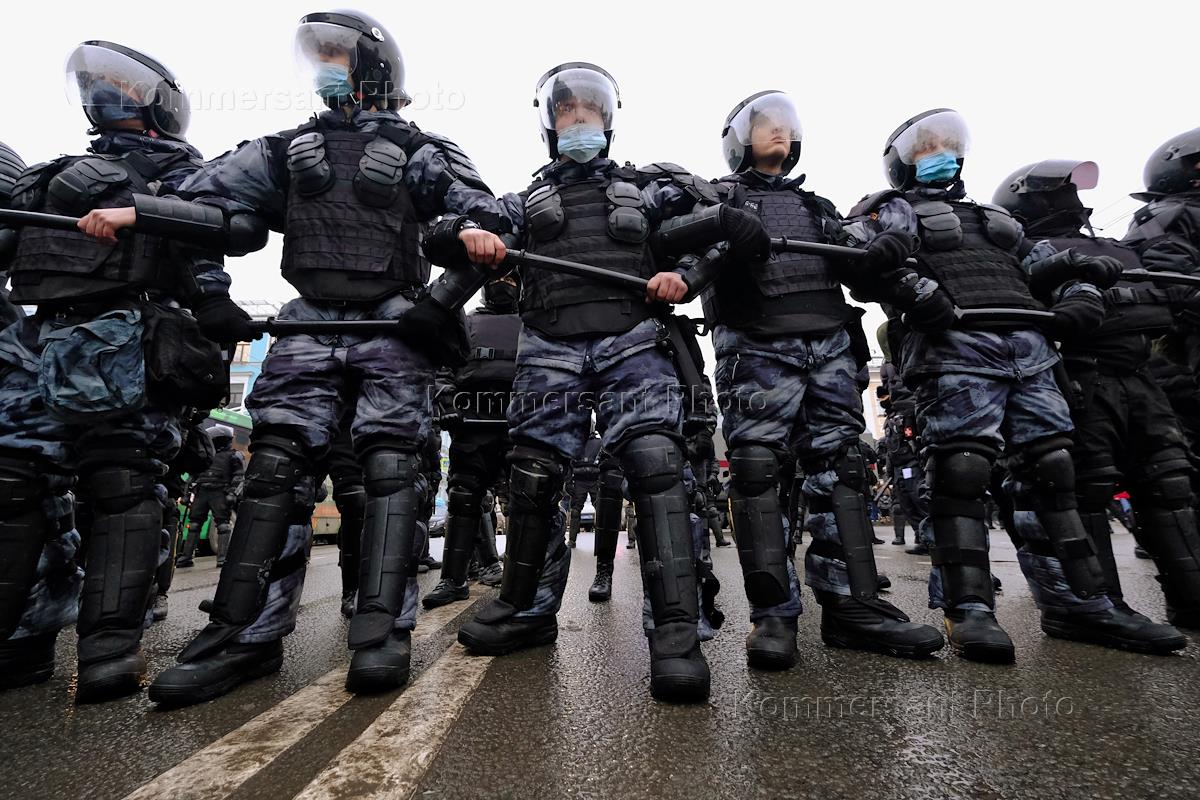 Несогласованная акция в поддержку задержанного оппозиционера Алексея Навального в центре города. Сотрудники полиции во время дежурства на акции.