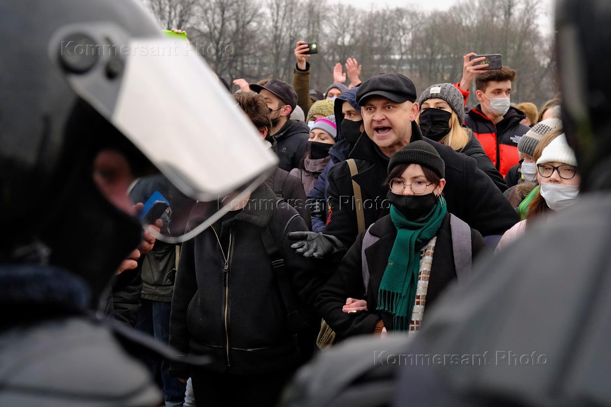 Митинг в поддержку политика Алексея Навального на Марсовом поле. Участники во время митинга. Сотрудники полиции во время задержания участника митинга.