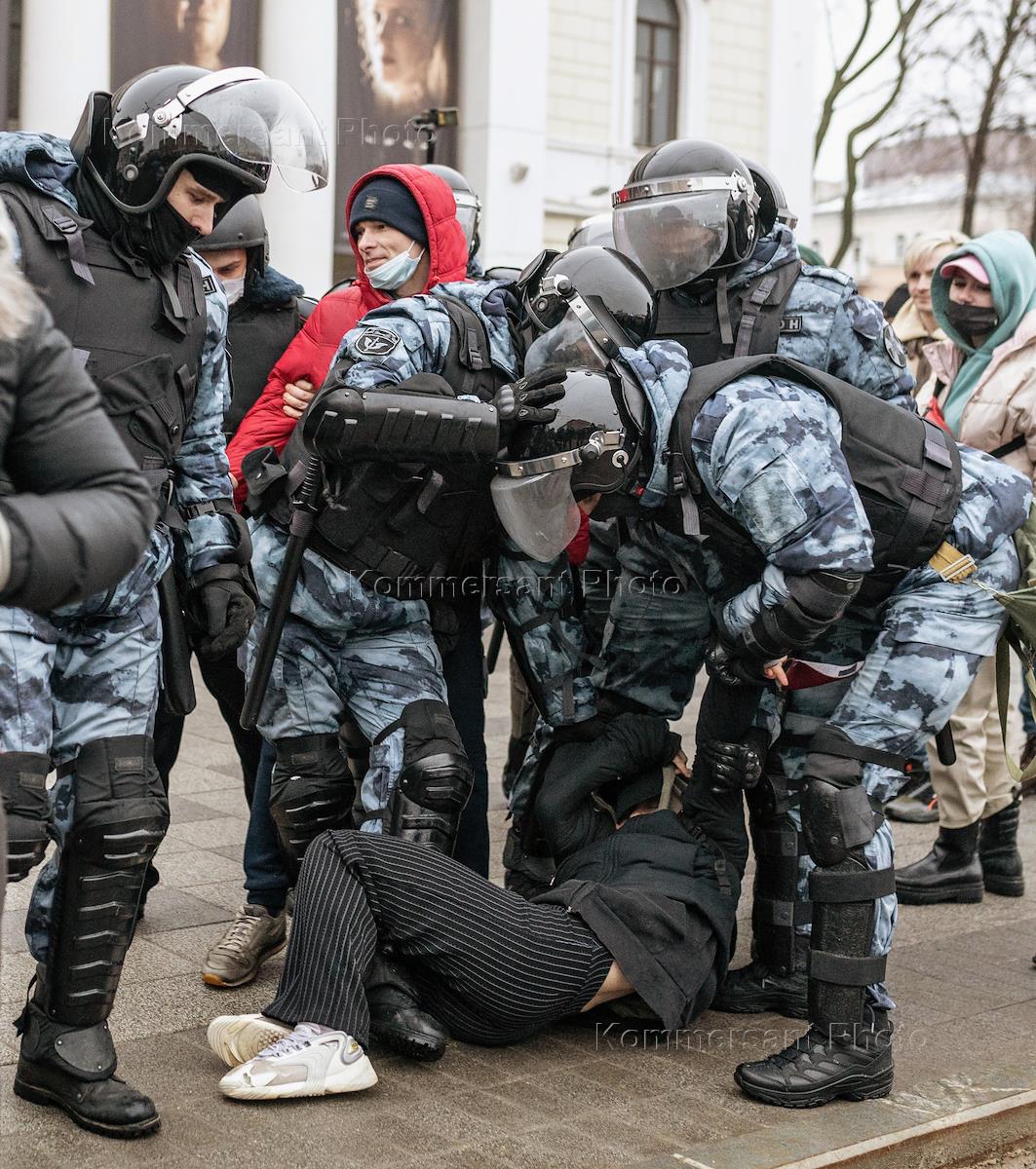 Акция в поддержку задержанного оппозиционера Алексея Навального на проспекте Революции. Сотрудники полиции во время задержания участников митинга.